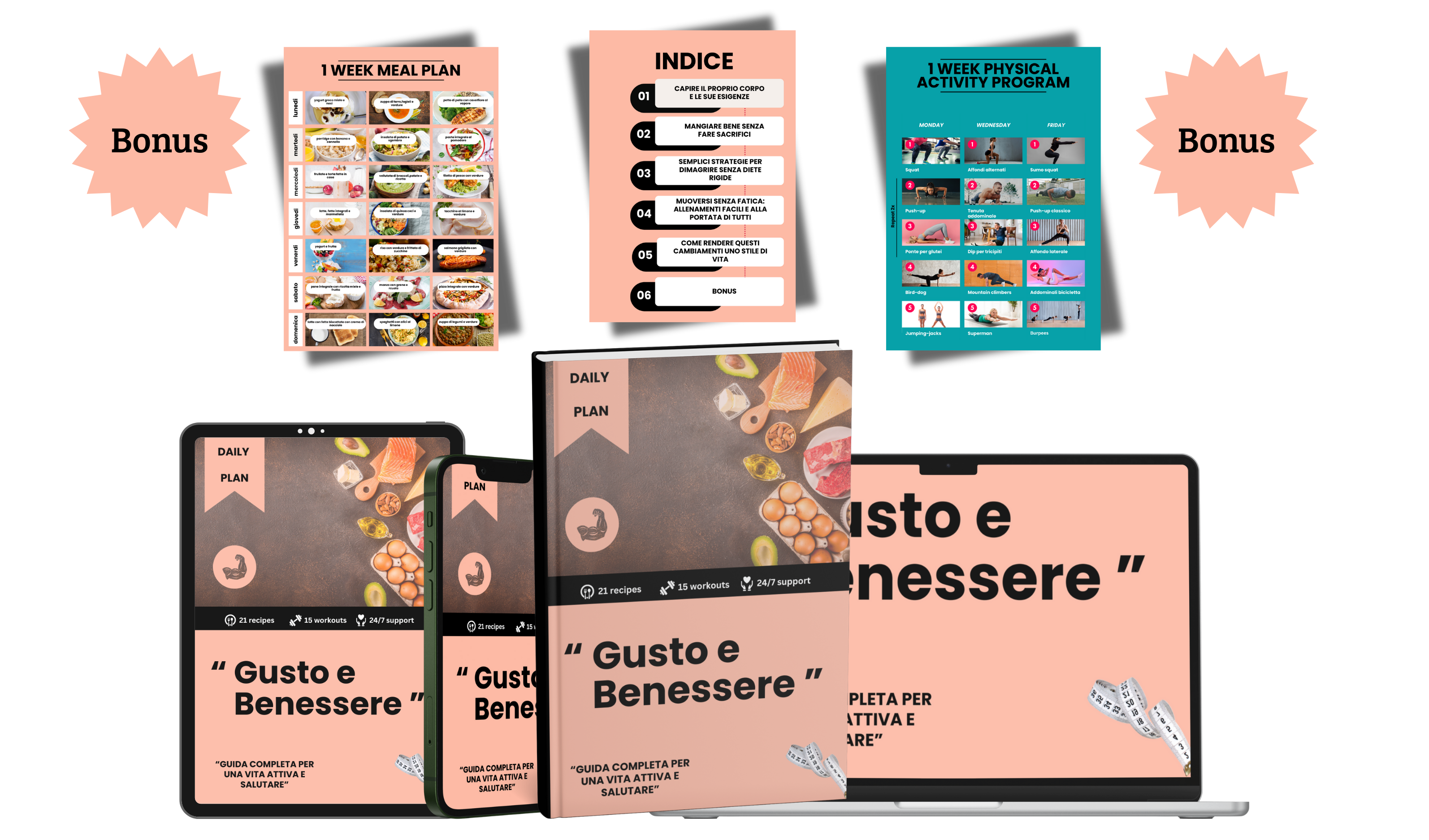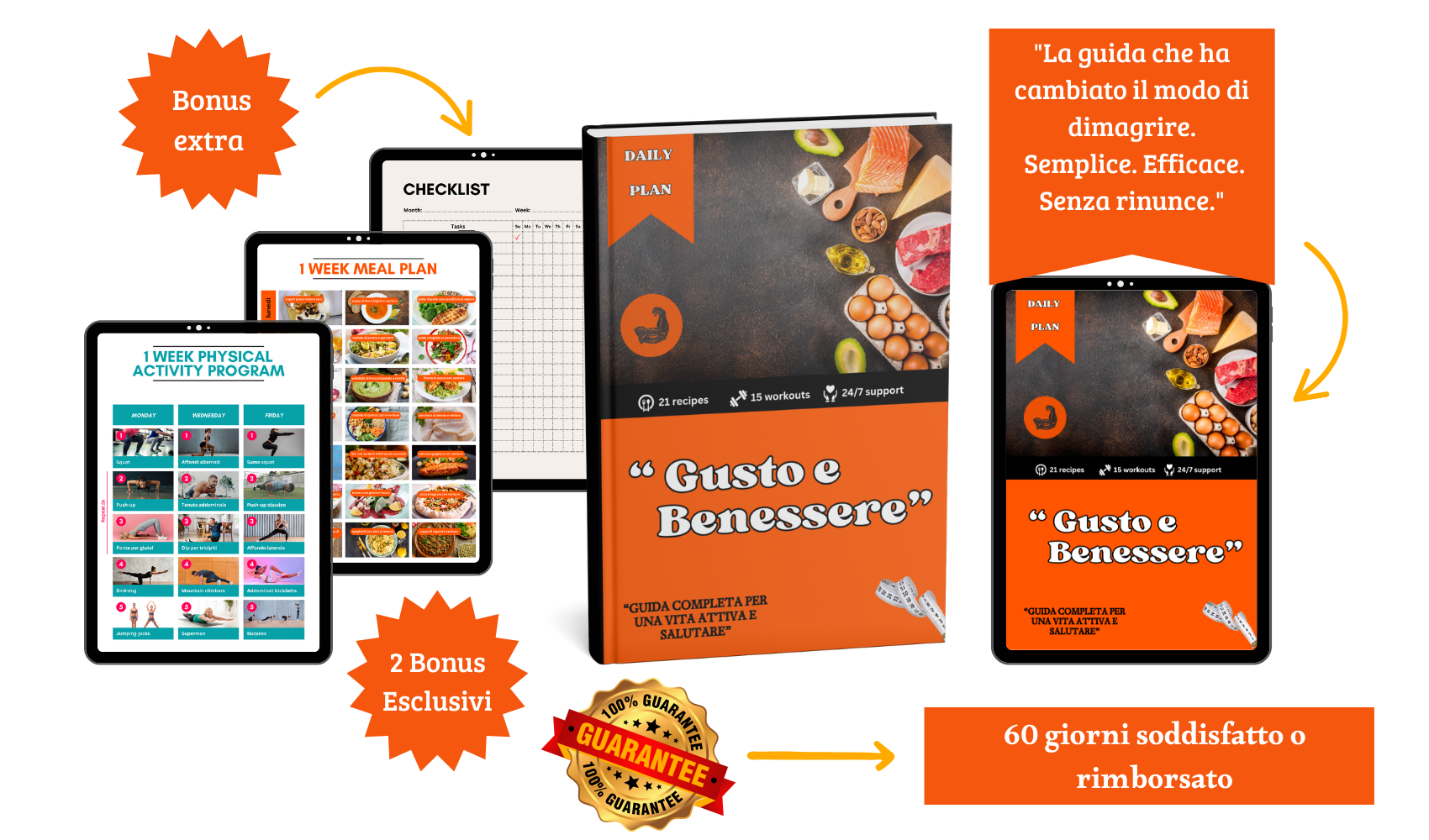 Gusto e Benessere la prima guida a farti perdere peso e rimanere in forma in pochi giorni , senza troppe rinunce e senza allenamenti estenuanti anche se non sei troppo costante.